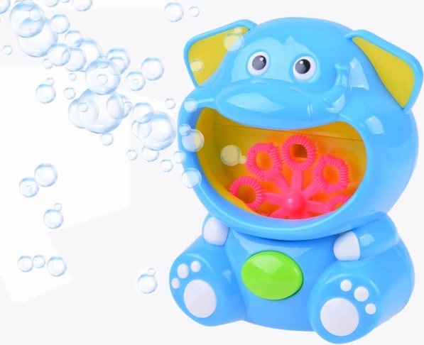 Cette machine à bulles en forme d’adorable éléphant bleu transforme chaque après-midi en spectacle féerique. À l’intérieur de la bouche, un disque rose à œillets tourne tandis qu’un ventilateur intégré crée une multitude de bulles scintillantes sans effort. L’utilisation est on ne peut plus simple : versez la solution, appuyez sur le bouton avant et la fête peut commencer.