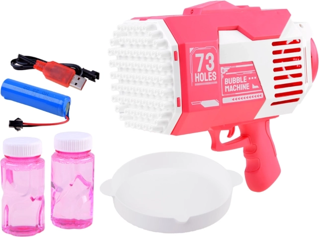 Ce pistolet à bulles électrique crée en un instant des milliers de bulles irisées. Il suffit de verser la solution dans le bol, d’immerger l’embout du pistolet et d’appuyer sur la gâchette. Grâce à l’alimentation par batterie rechargeable via USB, le jouet est toujours prêt à l’action et évite le remplacement des piles.