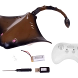 - Raie manta RC, télécommande, chargeur USB, batterie, hélices de rechange, tournevis
