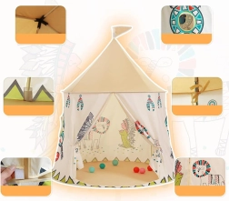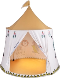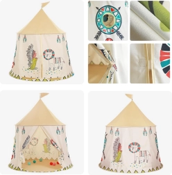 Ce tipi rond aux motifs indiens ludiques transforme la chambre en un coin magique pour la lecture, les jeux de rôle et la détente. Sa structure légère garantit un montage/démontage facile et un déplacement selon les besoins, tandis que le tissu respirant offre un climat agréable pendant le jeu.
