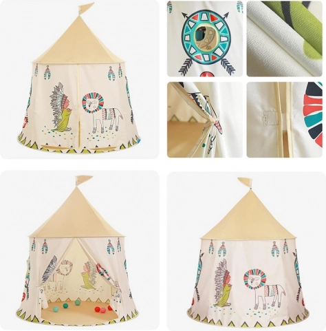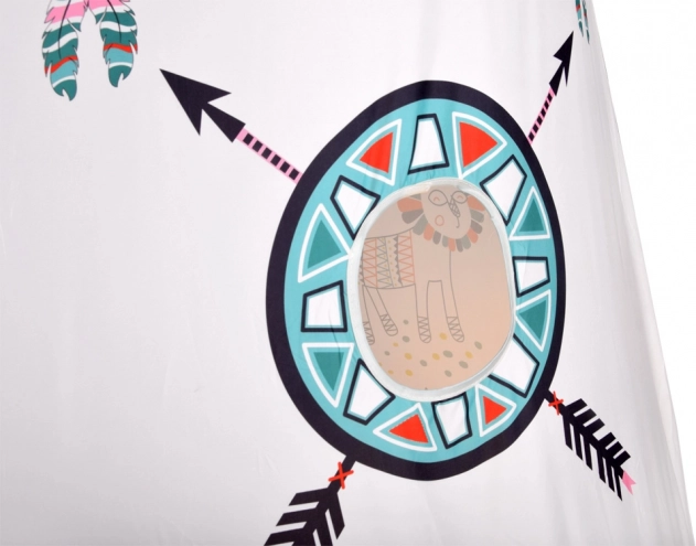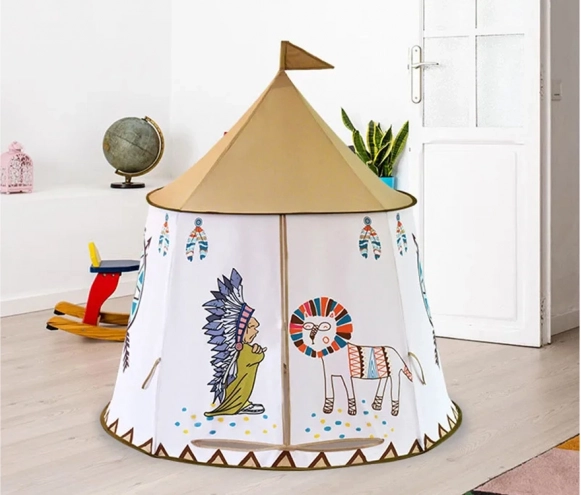 tipi enfant rond avec fenêtres et rideaux à motifs indiens