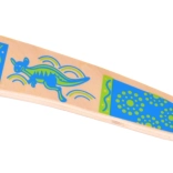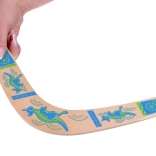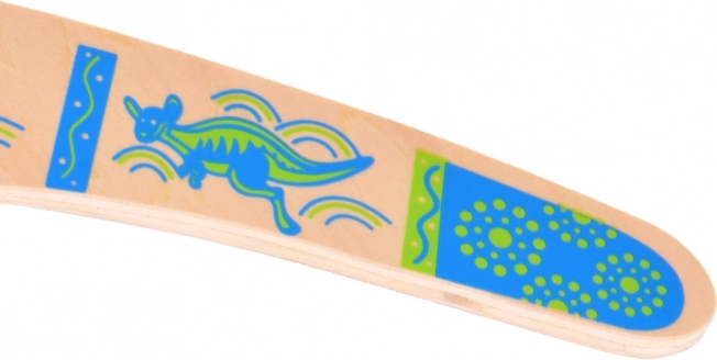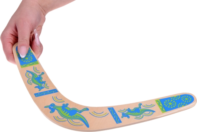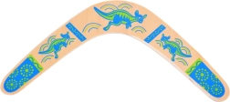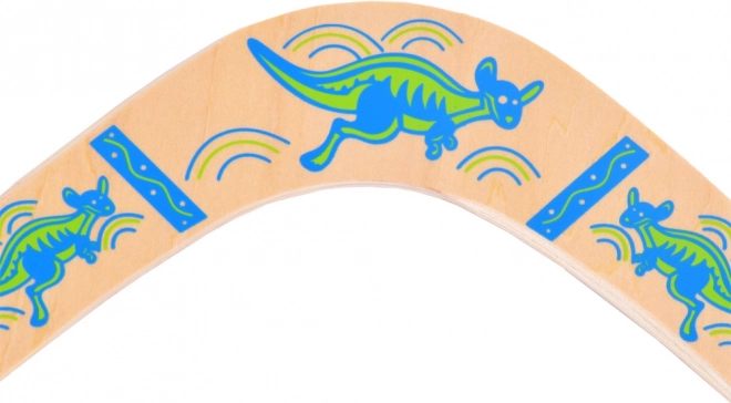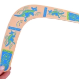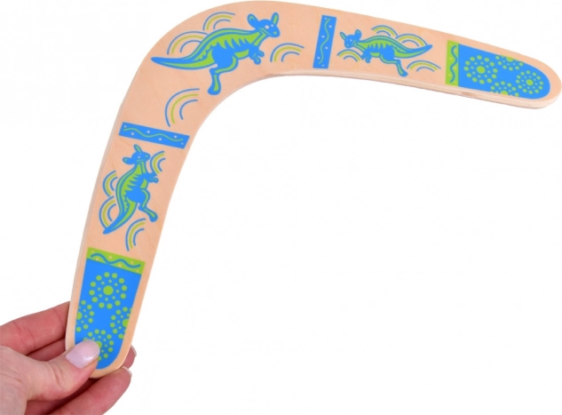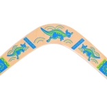 Ce boomerang en bois s’inspire de la tradition australienne et est adapté au jeu récréatif moderne. Son profil équilibré et une rotation correcte permettent le retour vers le lanceur en cas de lancer approprié. Les impressions colorées à motifs de kangourous ajoutent du style et améliorent la visibilité dans les airs.