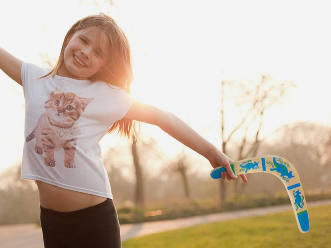 Découvrez le plaisir classique du lancer avec ce boomerang en bois de qualité. Grâce à sa forme en V aérodynamique, sa construction en bois légère et résistante et ses motifs de kangourous accrocheurs, il s’apprend facilement et apporte beaucoup de mouvement en plein air. Idéal pour les enfants comme les adultes, il développe la coordination œil‑main, la concentration et offre du plaisir en apprenant la bonne technique.
