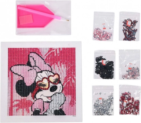 Créez facilement et de manière amusante une image scintillante de Minnie Mouse à l'aide des pierres cristallines et des outils fournis.