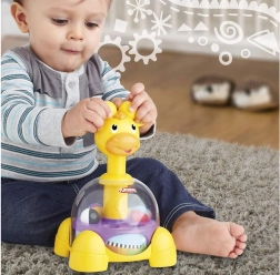 - Stimulation sensorielle: La girafe attire grâce à ses couleurs vives, son visage amical et ses sons amusants.