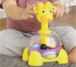 Lancez les balles avec la joyeuse girafe de Playskool ! Ce jouet interactif est idéal pour les enfants dès 6 mois. En appuyant sur la tête de la girafe, les balles colorées commencent à sauter joyeusement, incitant l'enfant à jouer avec enthousiasme.