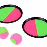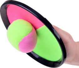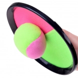 La surface de capture bicolore vert néon et rose avec velcro accroche la balle instantanément – idéale pour entraîner la précision et les réflexes.