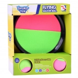 La boîte contient 2 palettes et 2 balles souples aux couleurs assorties – tout prêt pour jouer au jardin, à la plage ou au parc.