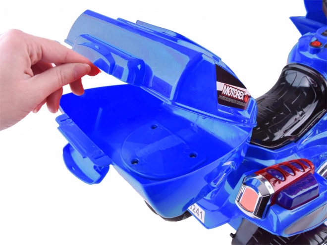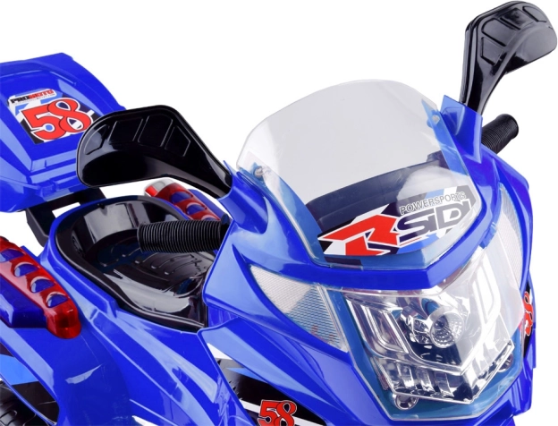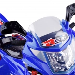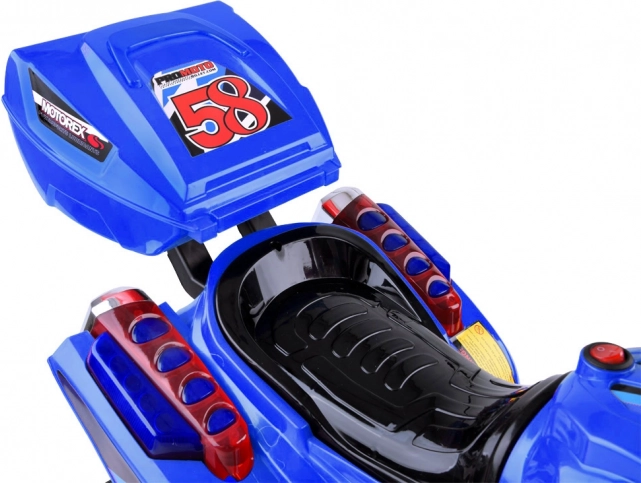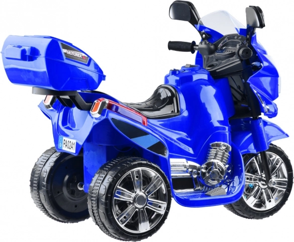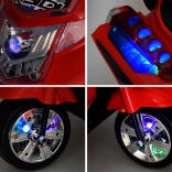 Moto pour enfants sur batterie au style sportif avec éclairage LED multicolore à l’avant, sur les côtés et dans les roues, offrant un grand divertissement et une meilleure visibilité. Grâce à ses dimensions compactes, elle est idéale pour l’appartement comme pour la terrasse. Elle dispose d’un système de freinage électrique, de sons de moteur et de mélodies amusantes, ainsi que d’un top case arrière pratique pour les petits objets.