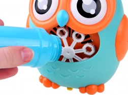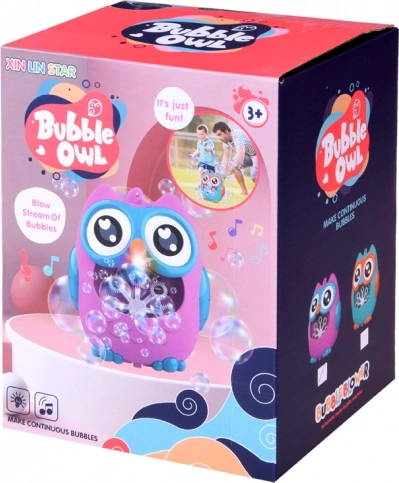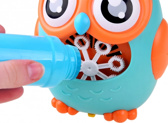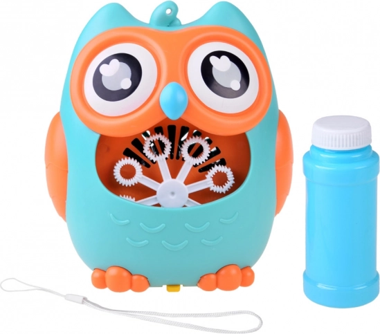 - Machine à bulles en plastique – hibou, bouteille de solution, dragonne