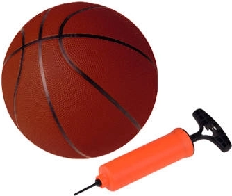 L'ensemble comprend un ballon de basket et une pompe pour une préparation rapide au jeu.