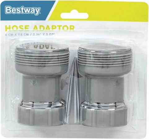 Adaptateurs pour tuyau de piscine de 38 mm de diamètre connectant des vannes dans les pompes de filtration Bestway de 32 mm de diamètre. Fabriqué en matériau très résistant et anticorrosion.