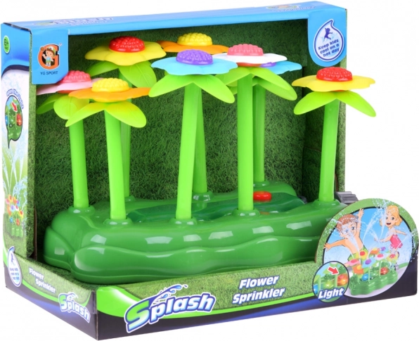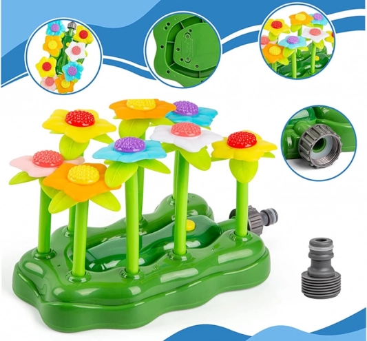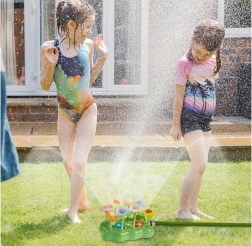 Les fleurs colorées ondulent sous la pression de l’eau et pulvérisent dans toutes les directions – parfait pour les jeux d’été sur la pelouse.