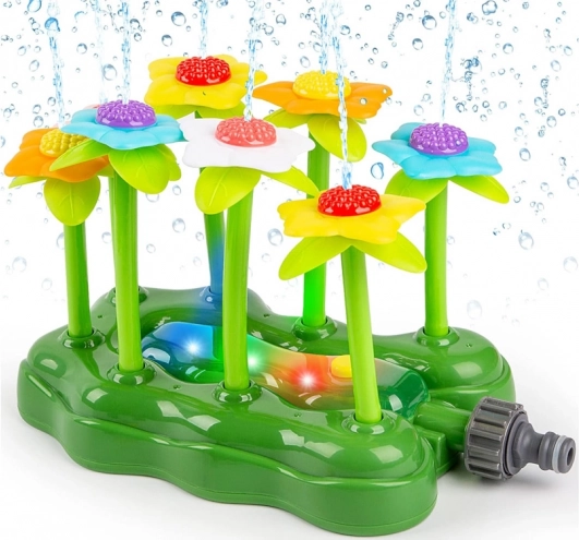 Ce joyeux arroseur fleuri allie esthétique et fonctionnalité : de fins jets d’eau apportent une agréable fraîcheur tout en aidant à humidifier la pelouse et les massifs. Le rétroéclairage LED intégré crée une atmosphère magique lors des jeux en soirée au jardin.