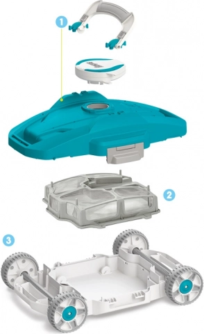 L’appareil se contrôle via un seul interrupteur d’alimentation et comprend des capteurs intégrés qui activent l’AquaTronix au contact de l’eau pour démarrer le nettoyage, puis l’éteignent lorsqu’il est sorti de l’eau, ce qui protège le moteur et prolonge sa durée de vie. La grande chambre intégrée peut contenir jusqu’à 3,5 l d’impuretés. Une fois complètement chargé, l’AquaTronix fonctionne environ 90 minutes, offrant suffisamment de temps pour obtenir une piscine d’une clarté cristalline. Ce robot sans fil bénéficie d’une liberté de mouvement totale grâce à son système de courant directionnel breveté, qui lui permet de changer de direction lorsqu’il rencontre des parois ou des obstacles. De plus, les clips à dégagement rapide simplifient l’entretien et le nettoyage : il suffit d’ouvrir la chambre et de retirer les débris.