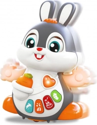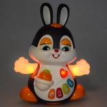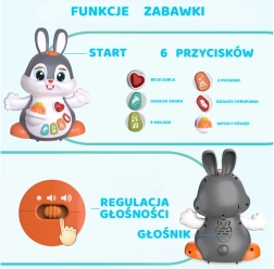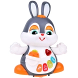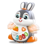 Caractéristiques :- Musique et lumière : Le lapin danse sur des rythmes de chansons joyeuses et clignote avec des lumières colorées, stimulant les sens de l’enfant et ajoutant à l’amusement.