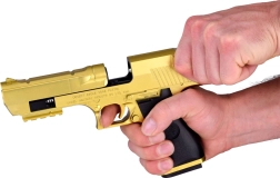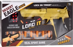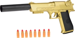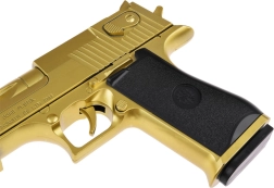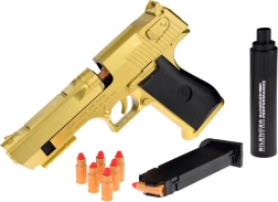 Ressentez l'excitation du monde de l'action avec ce Desert Eagle doré de jouet, qui tire des munitions en mousse douce. Il est conçu avec un