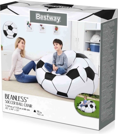 Profitez du confort et du style avec ce fauteuil gonflable unique qui combine fonctionnalité pratique et design moderne inspiré du football. Idéal pour la chambre des enfants ou le jardin.