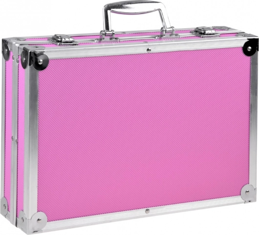 Rangé dans une mallette rose et noire, assurant une portabilité aisée et un bon rangement.