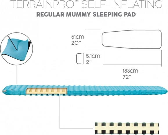 Une épaisseur de 5,1 cm et une valeur R de 4,7 conservent la chaleur et offrent un soutien stable même sur un sol irrégulier. Idéal pour un sommeil confortable lors du camping par temps plus frais.