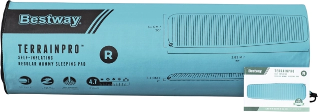 Vous cherchez un matelas fiable pour le camping et les sorties outdoor ? Le BESTWAY TerrainPro est un matelas autogonflant qui combine une isolation élevée R 4,7, une épaisseur confortable de 5,1 cm et une construction durable en ToughLite et nylon ripstop 70D. Il offre un soutien stable du corps, isole parfaitement du sol et est compatible avec les sacs de couchage momie.