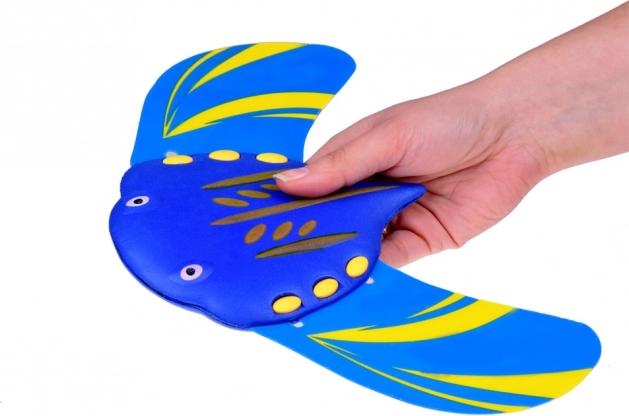 Forme hydrodynamique et propulsion sans piles par pression de l’eau font de cette raie un jouet parfait pour le bain comme pour la piscine. Ses nageoires lisses sont sans danger pour les enfants. Il suffit d’immerger et de lâcher – elle glisse d’elle‑même dans l’eau, tourne facilement et favorise l’apprentissage de la natation ainsi que le dépassement de la peur de l’immersion.