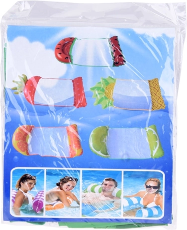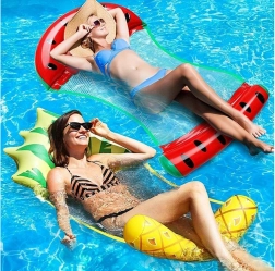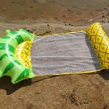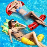 Le hamac gonflable type « pineapple » allie design ludique et conception intelligente : deux boudins d’air latéraux pour la stabilité et, entre eux, un filet en nylon robuste sur lequel vous vous installez confortablement. Vous restez partiellement immergé, ce qui permet de vous rafraîchir naturellement pendant le bronzage.