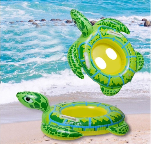 Adorable bouée gonflable en forme de tortue de 90 cm, idéale pour une première découverte de l’eau et l’apprentissage de la natation.
