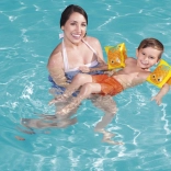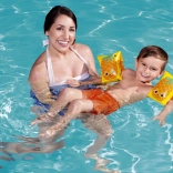 - Uniquement dans l’eau, à une profondeur où l’enfant a pied, toujours sous la surveillance d’un adulte