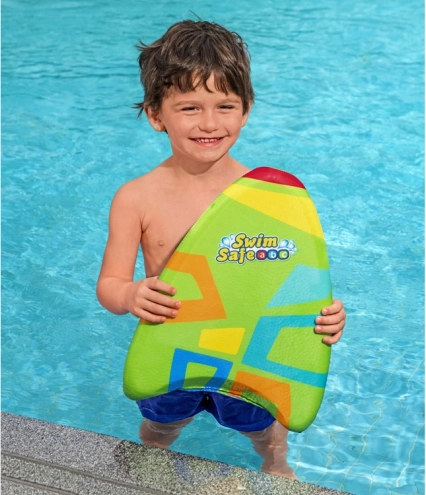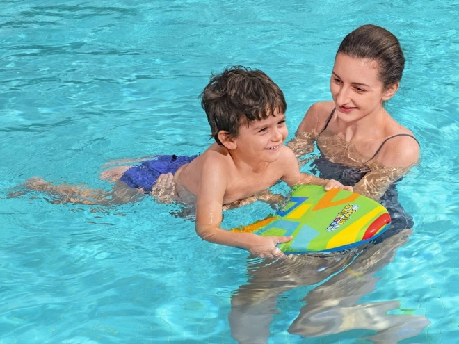 La planche mesure 42x32x3,5 cm et a une forme ergonomique. Elle est fabriquée en mousse durable avec une excellente flottabilité. De plus, elle est recouverte d'un tissu avec un motif coloré qui assure une prise confortable et empêche de glisser des mains. Convient aux enfants de 3 à 6 ans.