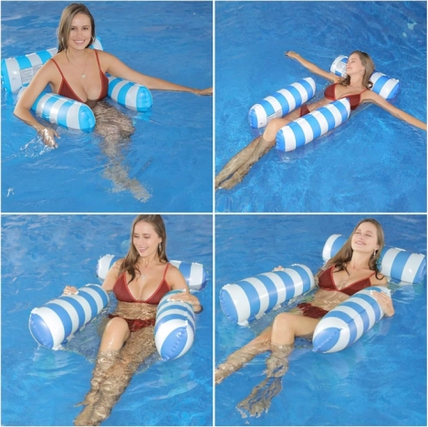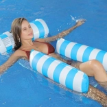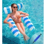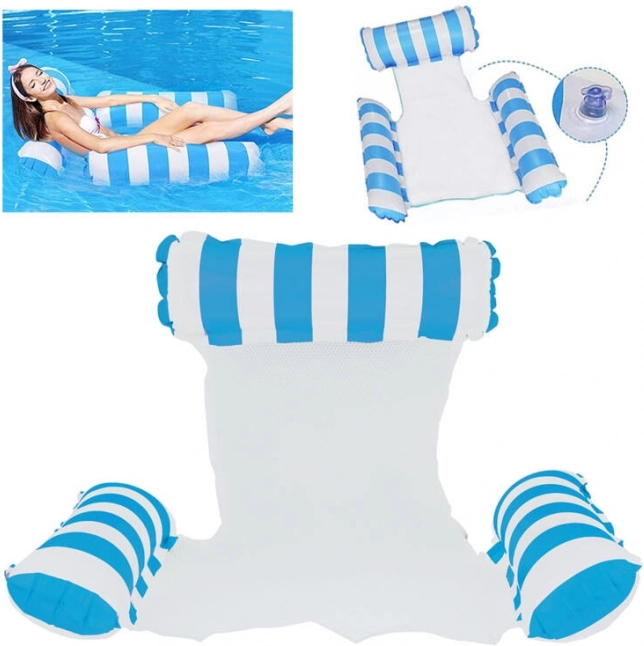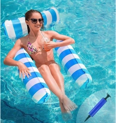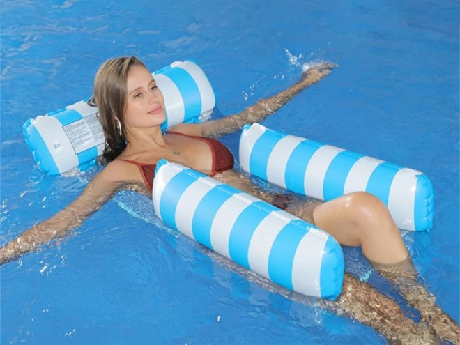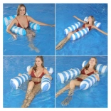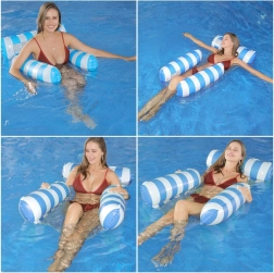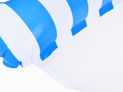 Libérez-vous du matelas flottant ordinaire et accueillez une solution unique - un matelas de style hamac, idéal pour les chaudes journées d'été. Conçu pour permettre une immersion partielle dans l'eau, vous serez toujours au frais en bronzant. Le matelas est équipé de parties gonflables en PVC durable et relié par un filet en nylon pour un confort maximal. Son design bleu et blanc élégant embellira vos photos de vacances.