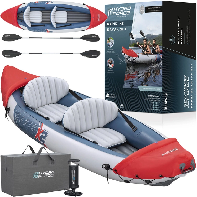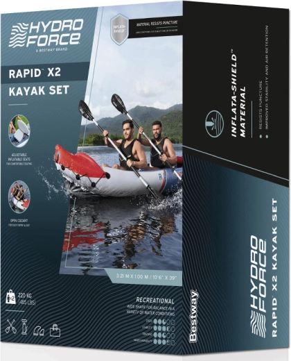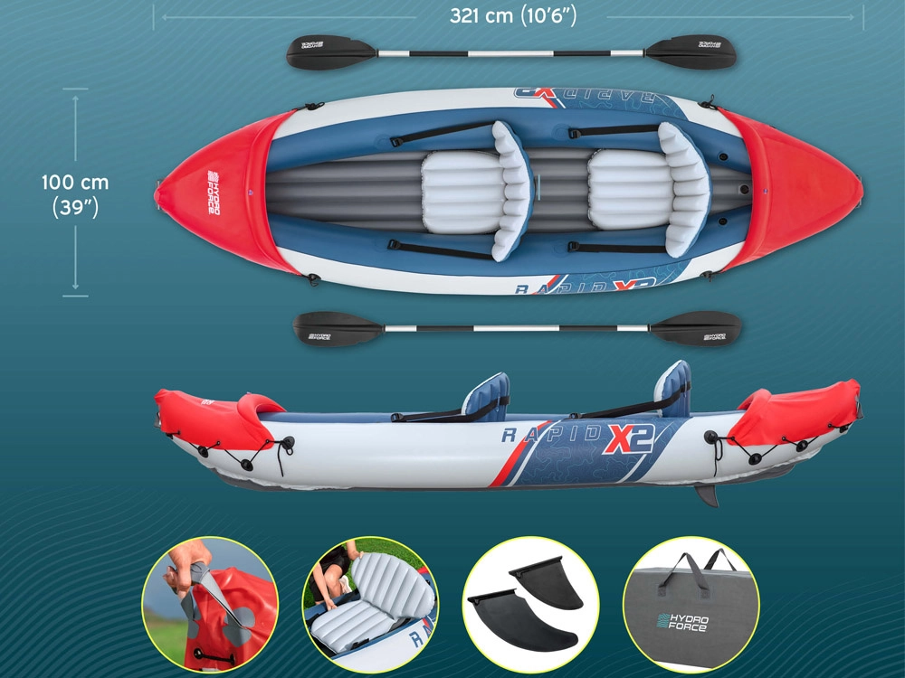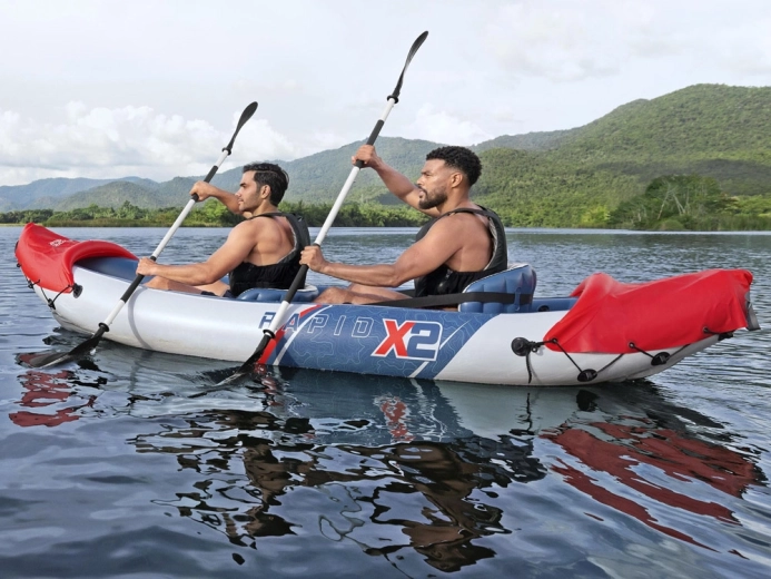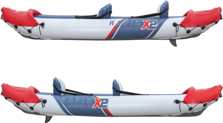 Profitez des lacs calmes, des baies et des rivières plus lentes avec ce kayak tandem qui associe une construction en PVC robuste et résistante (0,57 mm) à une grande praticité. Grâce aux valves à vis/Boston rapides, il se gonfle et se dégonfle facilement, tandis que le plancher I‑beam souple assure rigidité et confort pendant la navigation.