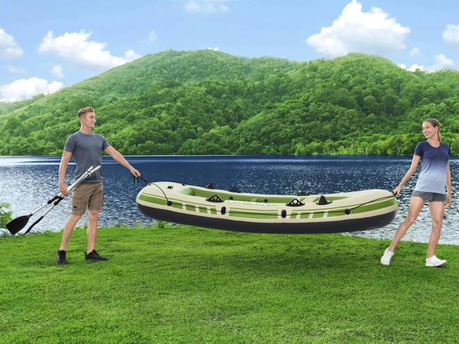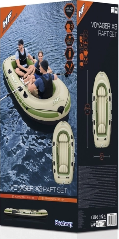 Le bateau est équipé de coussins gonflables sur les sièges et d'un plancher gonflable contribuant au confort de votre navigation. Une fois l'aventure terminée, vous pouvez facilement le rouler et le ranger dans le sac durable. Sa capacité de charge maximale est de 360 kg, garantissant la sécurité de tous les passagers.