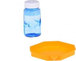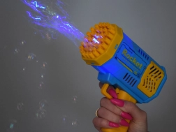Le pistolet à bulles est une machine unique à créer des bulles, car il n'a pas de réservoir intégré pour le liquide. Comment alors créons-nous ces magnifiques sphères arc-en-ciel qui s'envolent vers le ciel ? C'est simple ! Il suffit de verser une petite quantité de liquide, incluse dans l'ensemble, dans un petit plat rose et de tremper le devant du pistolet dedans. Puis, visez et appuyez sur la gâchette. Devant nous apparaît un spectacle fascinant ! De 40 trous voleront des formes rondes et étincelantes, suscitant des cris joyeux chez de nombreux enfants. Et les adultes seront également très impressionnés.