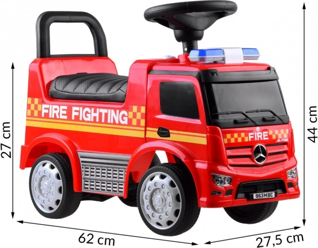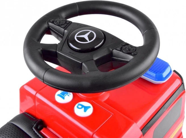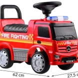 Assurez du plaisir et de la sécurité à votre enfant avec ce trotteur Mercedes sous licence en forme de camion de pompiers. Fabriqué à partir de plastique de haute qualité, il offre une durabilité et une couleur exceptionnelles. Grâce à son siège confortable avec dossier, le trajet est non seulement agréable mais aussi sûr. Le mécanisme de verrouillage empêche le renversement vers l'arrière.