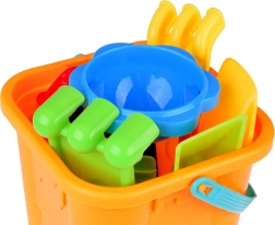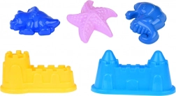 Cinq moules (châteaux, étoile de mer, dinosaure, hippocampe) et un ensemble de pelles et de râteaux permettent de créer des constructions variées et des détails précis.