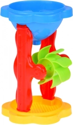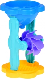 Versez du sable ou de l’eau dans l’entonnoir et regardez la roue tourner. Un spectacle captivant qui stimule la curiosité.