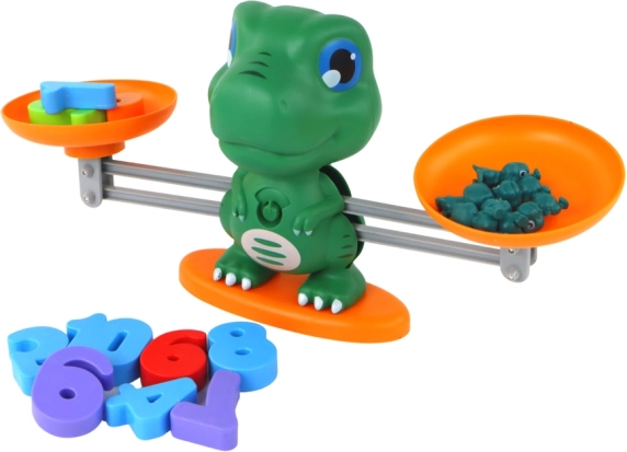 La balance dinosaure à deux plateaux aide les enfants à comprendre comment équilibrer les nombres et les quantités. Idéale pour une première approche des notions plus/moins et égal.
