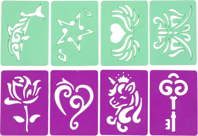 Il suffit de choisir un motif de pochoir préféré, de sélectionner une couleur et de commencer à créer. Idéal pour les fêtes d'enfants, les après-midis entre ami(e)s et les activités à la maison – il développe la motricité fine et les compétences artistiques.