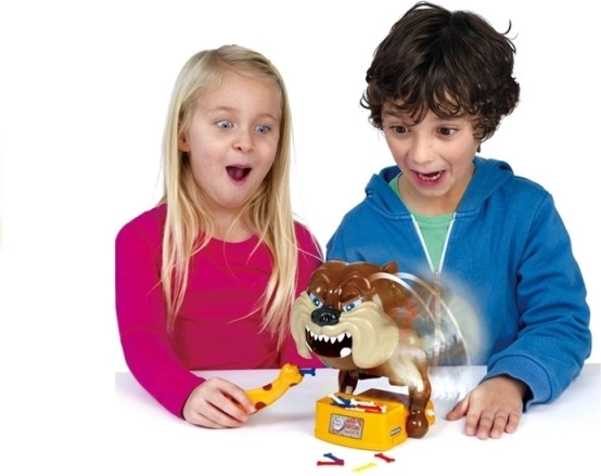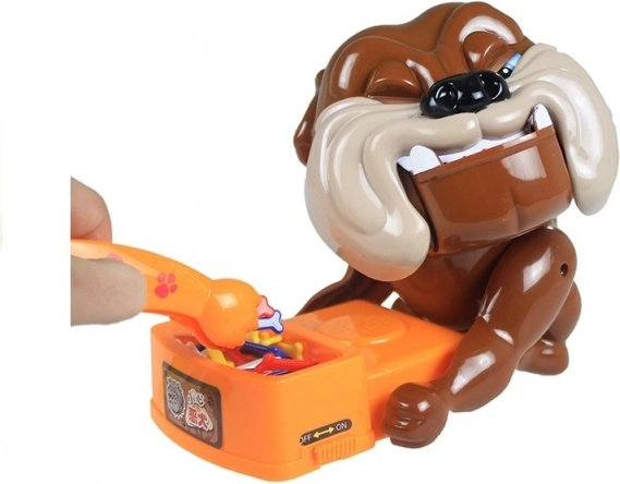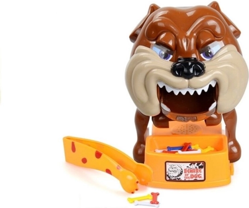 Retirez les os du bol, mais faites attention à ne pas réveiller le chien, car il est très en colère ! Tout ce que vous avez à faire, c’est préparer le chien en colère pour la partie. Pour cela, insérez des piles (non incluses), remontez-le jusqu’à ce qu’il pose la tête sur sa patte gauche et ferme les yeux. Le plus jeune joueur commence la partie : il choisit un os et tente de le retirer avec la pince fournie. Si le chien se réveille, le joueur est éliminé. Pour poursuivre la partie, il faut rendormir le bulldog. Le jeu continue jusqu’à ce qu’il ne reste plus qu’un seul joueur que le chien n’a pas mordu : ce joueur est le gagnant.
