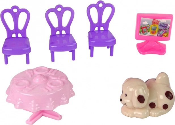 Le set inclut également d’adorables éléments de mobilier et accessoires, qui élargissent les possibilités de jeu et permettent d’aménager diverses pièces pour les poupées. Cette maison est non seulement une excellente source de divertissement, mais aussi un outil éducatif, encourageant les enfants à prendre soin de leurs poupées et à créer leurs propres histoires.