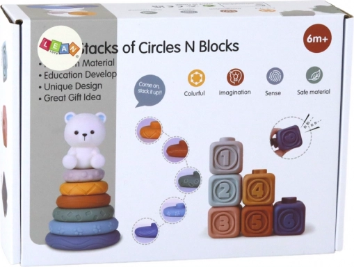 L'ensemble éducatif pour tout-petits combine apprentissage et divertissement pour les plus jeunes. Il comprend une pyramide avec un ours et des cubes souples, ce qui aide à développer les compétences motrices et cognitives des enfants de manière naturelle et agréable.