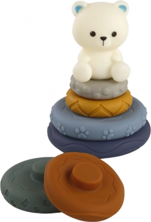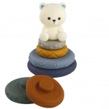 L'élément central de l'ensemble est une pyramide colorée avec un ours blanc au sommet, qui encourage l'enfant à développer la coordination œil-main, la précision des mouvements et la pensée logique par l'empilage d'anneaux de différentes tailles et textures.<\2fp>