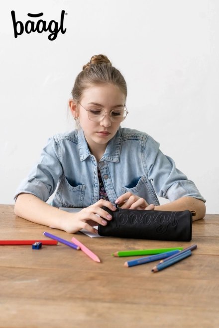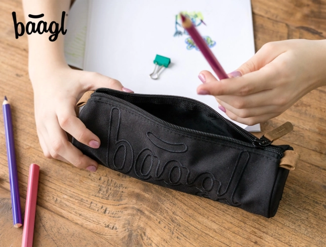 La trousse scolaire Darkness de Baagl allie un matériau solide et résistant à une fermeture pratique avec zip YKK.