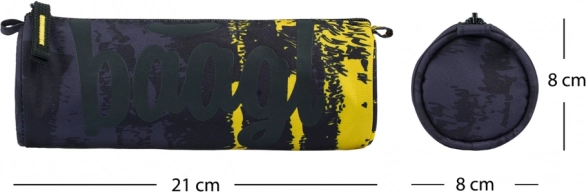 Avec des dimensions idéales pour les fournitures d’écriture standard, elle offre un espace de rangement suffisant, tandis que son design compact facilite le transport. Son look élégant est complété par un motif moderne noir et jaune avec le logo « Baagl » bien visible.
