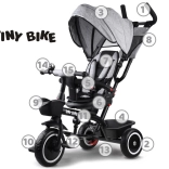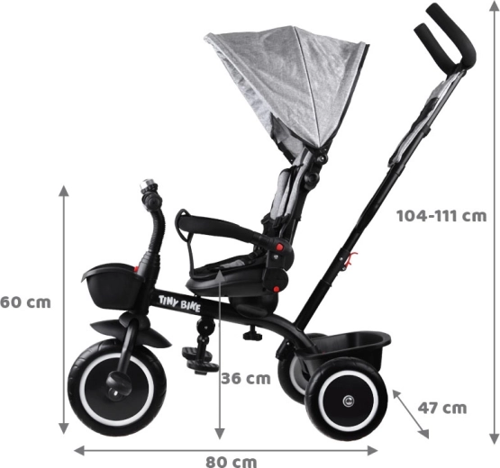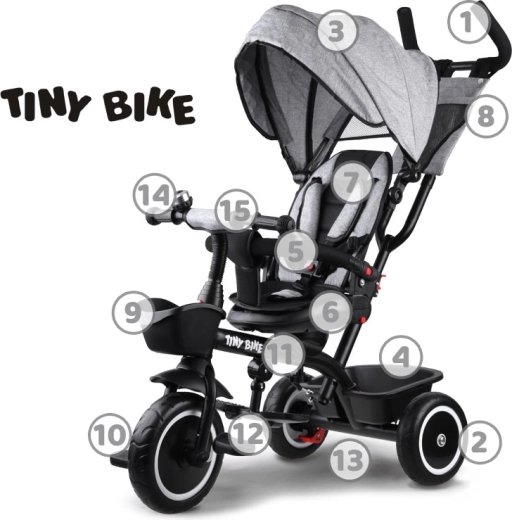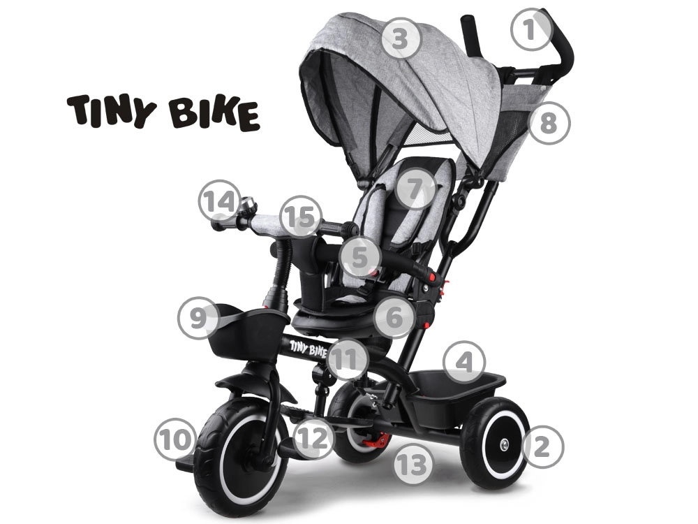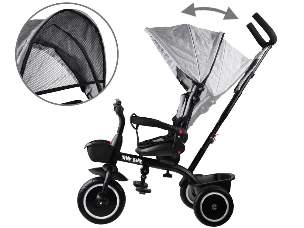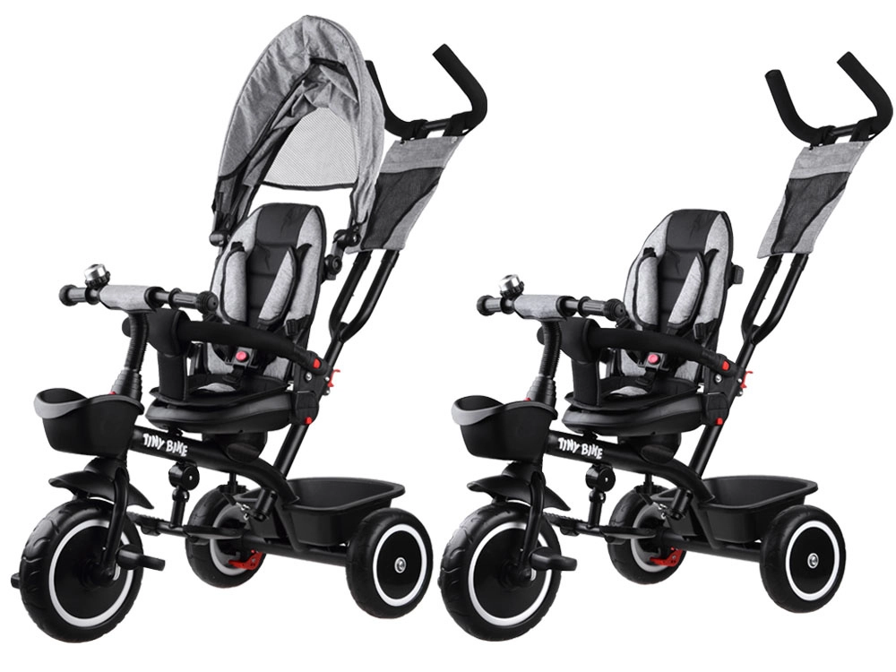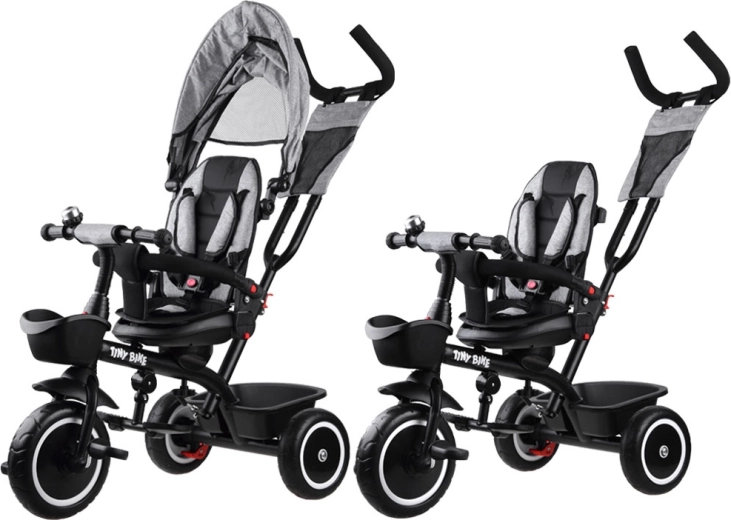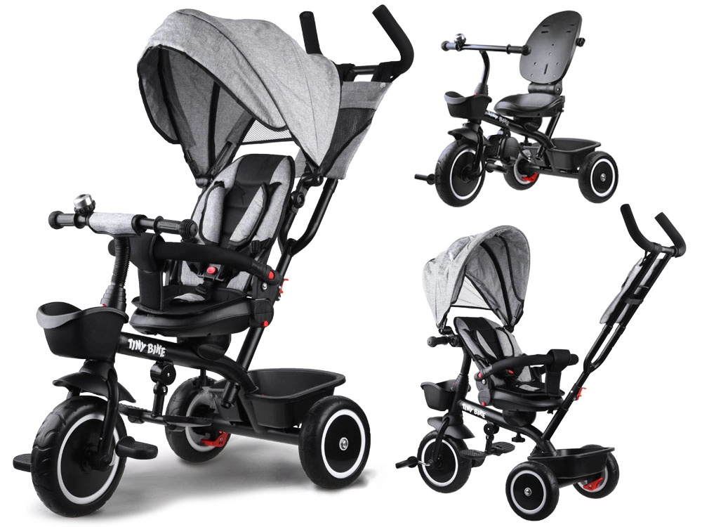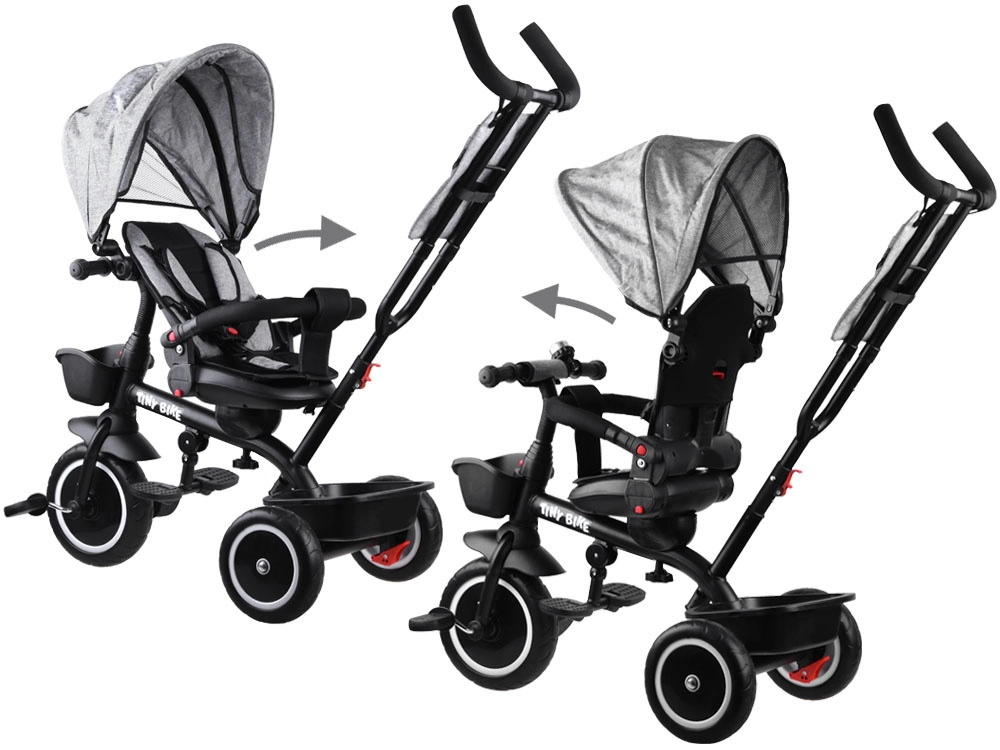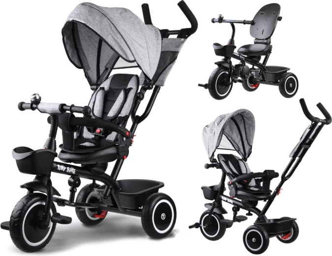 Le tricycle pour enfant multifonction 3‑en‑1 TINY BIKE avec siège pivotant combine la fonction de tricycle poussé par le parent, de poussette et de tricycle à pédales autonome. Il offre une ceinture 5 points, un auvent pliable avec filet, des roues EVA sans entretien, des freins arrière et de nombreux accessoires pour des sorties confortables et sécurisées de 6 mois à environ 5 ans.