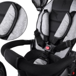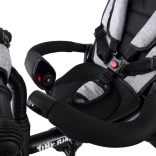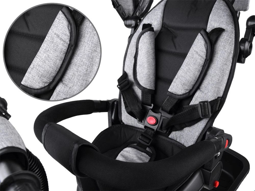 Le tricycle 3‑en‑1 évolue avec l’enfant : du mode dirigé par le parent aux premiers coups de pédale, jusqu’à la conduite autonome. Le siège pivotant et inclinable avec revêtement doux, les ceintures de sécurité 5 points et l’arceau rembourré garantissent un maximum de sécurité et de confort. L’auvent pliable avec filet arrière ventile et protège du soleil, du vent et d’une légère pluie.