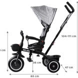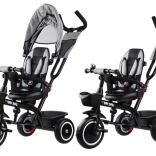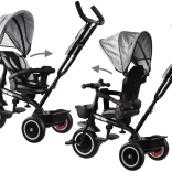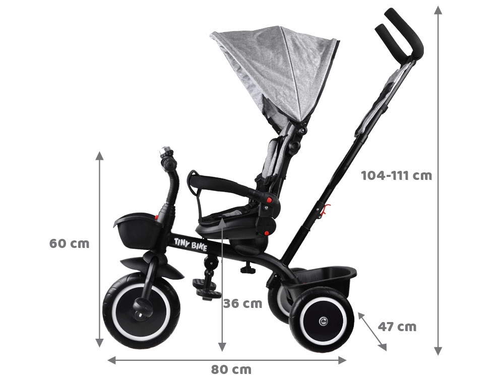 - Fonction 3‑en‑1 : tricycle poussé, mode poussette, tricycle autonome