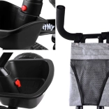 - auvent pliable avec filet, ceinture 5 points, arceau de sécurité, repose‑pieds rabattables, sonnette, panier avant, panier arrière, sac