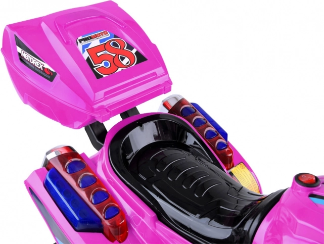 La moto démarre par bouton avec un son de moteur réaliste, propose des mélodies joyeuses et est équipée d’un frein électrique qui s’active automatiquement en relâchant la pédale d’accélérateur. Le top-case arrière pratique accueille de petits jouets et les indispensables du trajet. On trouve également des rétroviseurs latéraux, un pare-brise avant et une structure en plastique robuste.